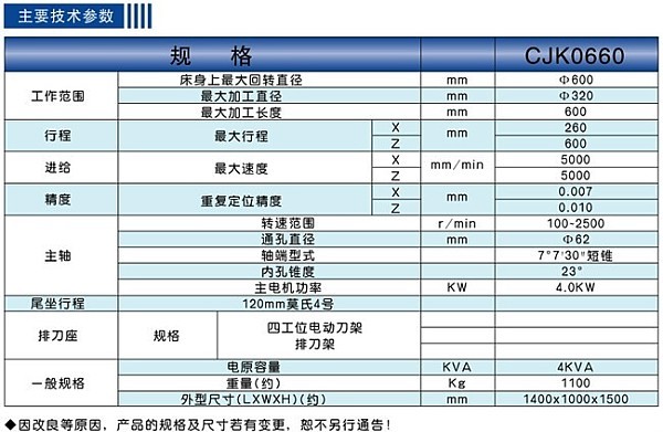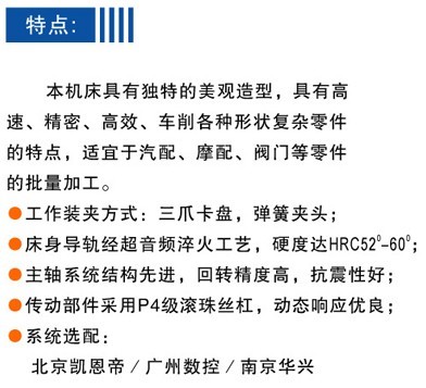 公司生產的CJK系列數控機床具有精密高、規格齊、結構合理、通用性強、造型美觀等優點。采用高精度軸承,導軌使用超音頻淬火,經久耐用。車床采用彈簧快速夾緊,電機直接帶動主軸皮帶輪傳動,并配有縱橫定位裝置控制行程,能完成內外圓車削、端面車削、切斷、割槽等,是儀表儀器、電器、汽車零配件、軸承及小五金行業零件加工的理想設備。